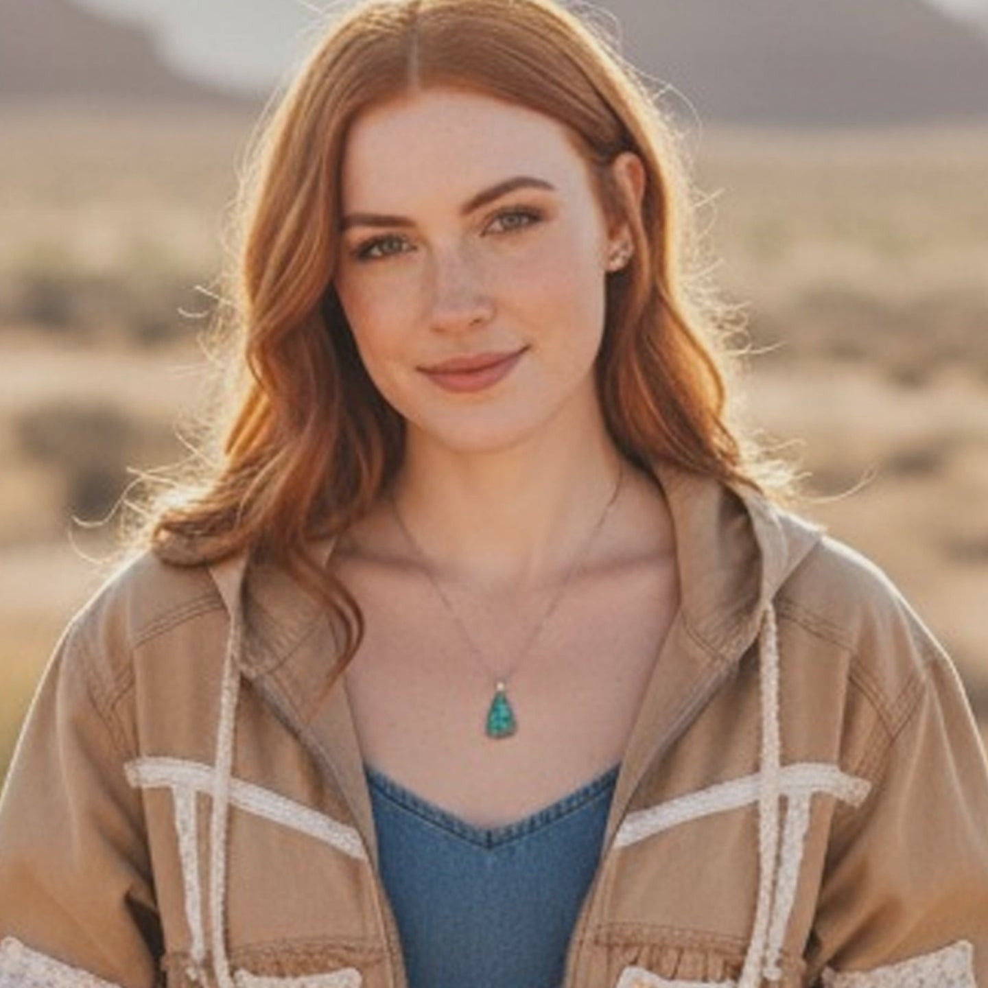 Inspired by sun-warmed stone and wide-open skies, the Blue Mesa Pendant captures the spirit of the Southwest in a delicate, teardrop form. The turquoise-hued stone sits gracefully within a silver-tone frame, its soft triangle shape echoing natural formations and ancient trails. This necklace speaks with quiet strength—versatile, calming, and confidently feminine.