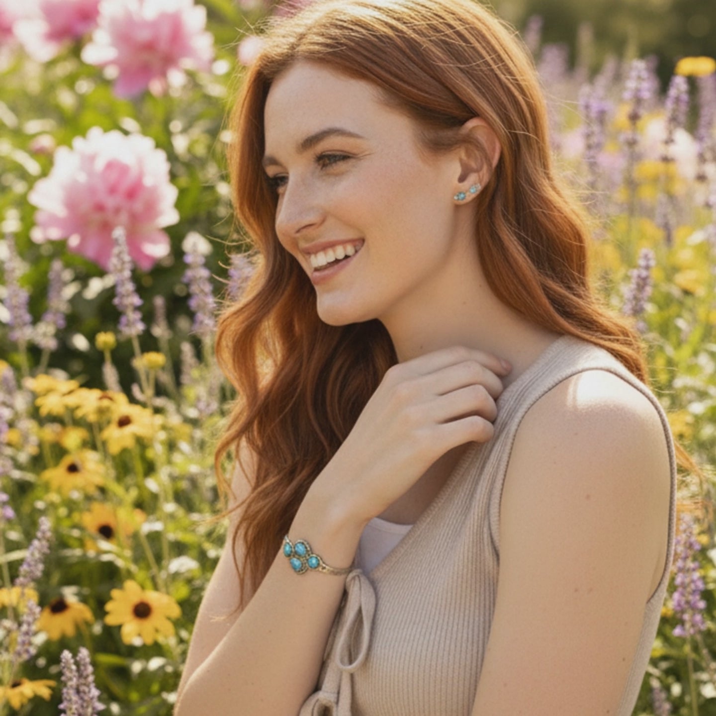 This cuff bracelet speaks to the free spirit in you. With its soft turquoise hues and vintage-style detailing, it looks like something passed down through generations — even if you just found it today. It's bold yet wearable, ornate yet grounded. A piece that doesn’t need to match anything because it matches you. Whether you wear it daily or save it for special moments, it always makes your style feel more you.